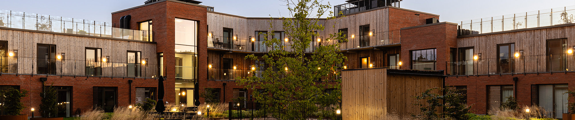 Fyns Almennyttige Boligselskab har med valget af vores armaturer, fået en både moderne og tryghedsskabende udendørsbelysning, der understøtter byggeriets æstetiske karakter og samtidigt mindsker energiforbruget til gavn for både klima og økonomi.